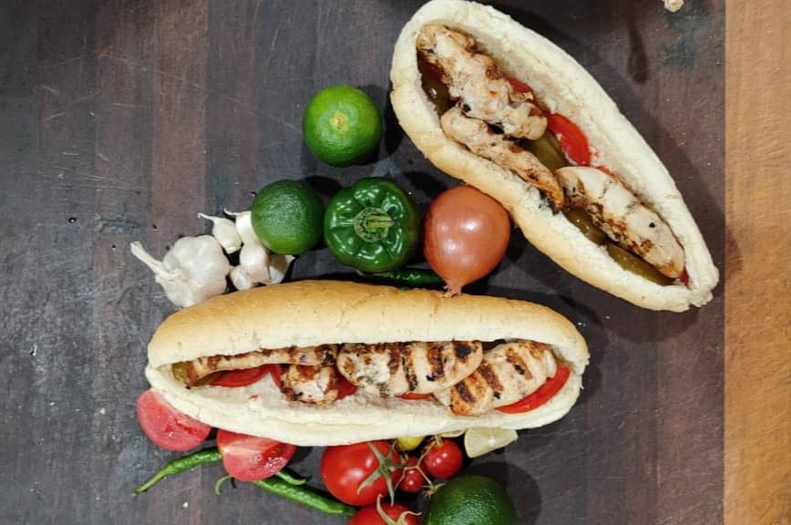 مرغ گریل ، ادویه مخصوص ، کاهو ، گوجه ، خیارشور ، سس مخصوص